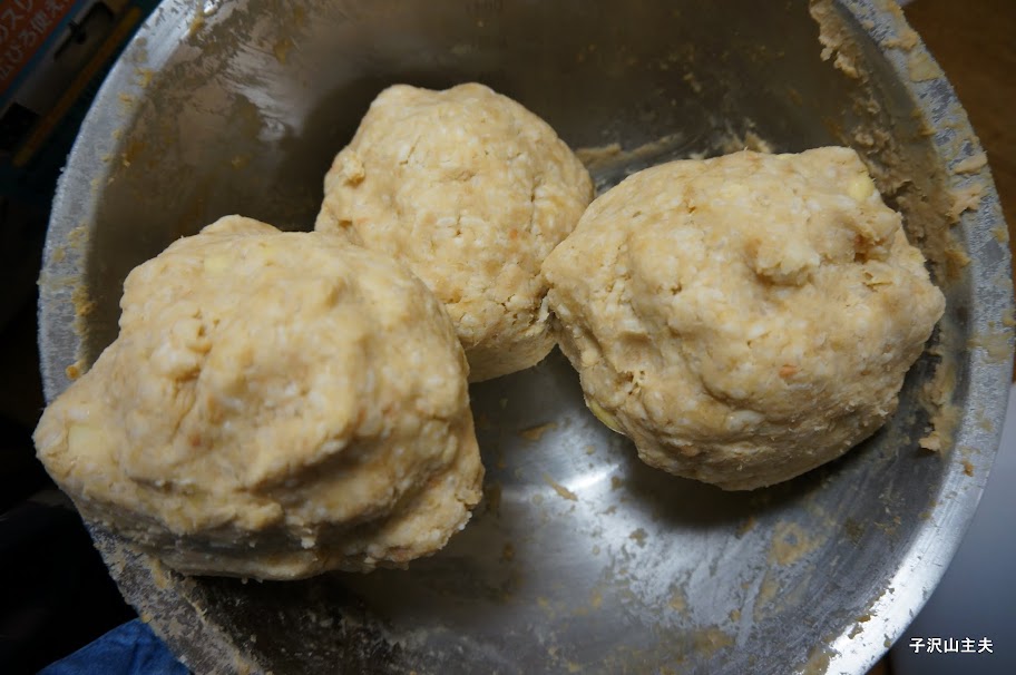 あとは容器に詰めるだけなんですが空気を抜くために、まずは団子を作ります。